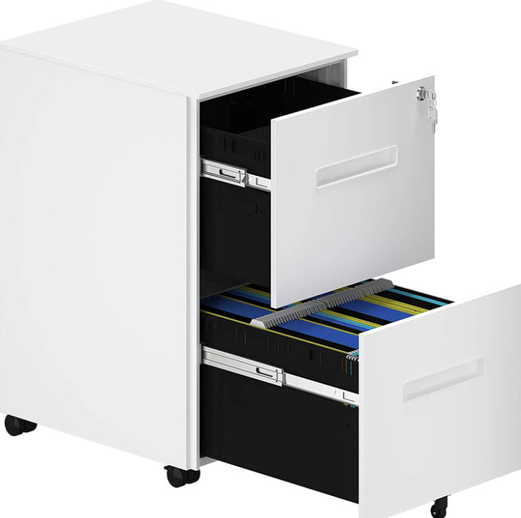 On the other hand, the mobile cabinet is specially designed in such a way that the cabinet can easily fit into the desk to save space. Some movable cabinets are double-sided, one is a cabinet that can be rotated both ways to reveal a separate file column on either side.
